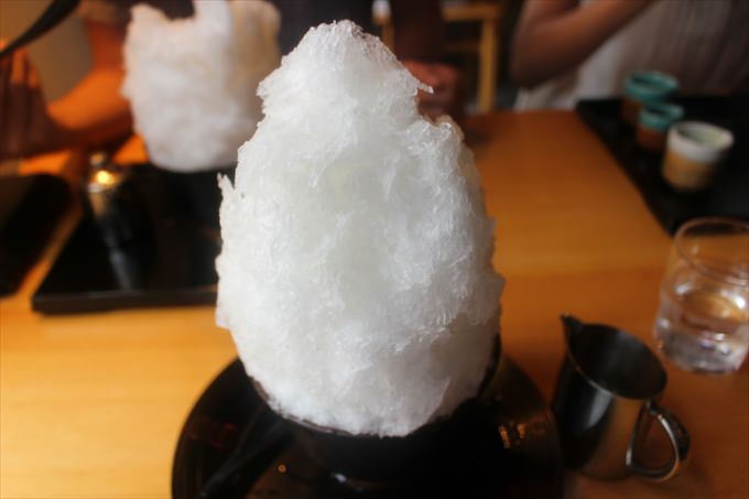 天然氷を使用した上質なかき氷は、口に入れた瞬間に溶けてなくなってしまうほど繊細な口当たり。和三盆糖を煮詰めて作った上品な甘さが特徴的なシロップが、氷の味を引き立てます。