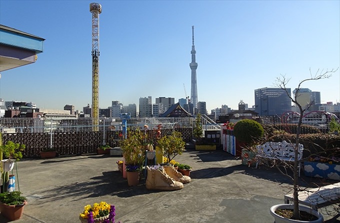 意外と知られていない穴場スポットで、屋上から浅草の下町風景を眺められるほか、屋上から花やしきのカラフル風景やスカイツリーも拝むことができます。隠れたフォトスポットとなっているので、休憩がてら足を運んでみて下さい。