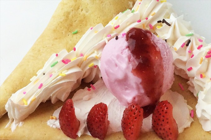 デート中に小腹を空いた時におすすめのクレープ。バナナやイチゴを使用した定番のクレープもあるし、「甘いものの気分じゃない」ならピザチーズクレープも販売しています。気分によって選べるので使い勝手が良いですよ。