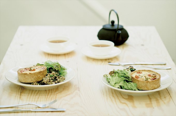 人気のランチメニューは「今週のキッシュ(1,460円+税)」。季節の野菜をふんだんに使用したキッシュと2種類のサラダ(玄米サラダ、グリーンサラダ)がワンプレートになっており、ドリンクがセットになっています。
