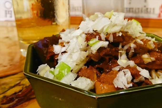 お店の先代は、新宿の焼きとんの名店『鳥茂』で修行されたそうで、その流儀がいまも息づいています。お通しの【たまねぎともつの和え物】から仕事に一切の手ぬかりはなく、真心のこもった味が楽しめます。