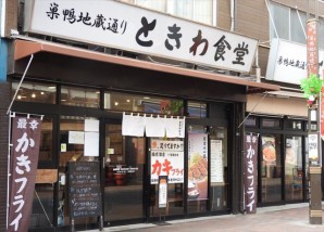 巣鴨に複数店舗を構えるときわ食堂は、ご近所で知らない者はいない人気店です。名物のエビフライは、お客さんの多くが注文する定番メニュー。驚くほどの大きさで、身もしっかり詰まっており、食べごたえ十分です。