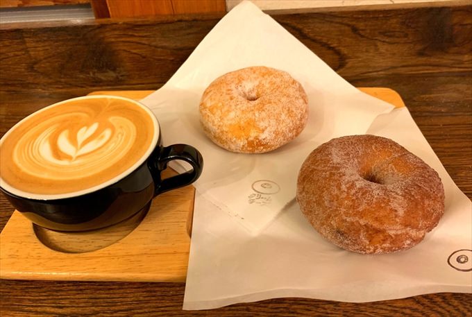 代々木上原デートのおやつといえばharittsのドーナツ!テイクアウトして公園デートにもおすすめ。もっちもちのドーナツにぴったりなスペシャルコーヒーもあります。