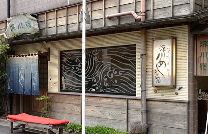 江戸時代に生まれた日本5大銘飯のひとつである深川めしを提供している深川宿本店。お店は年季の入った趣のある外観で、店前の赤い椅子やのぼりを目印に向かうとわかりやすいです。