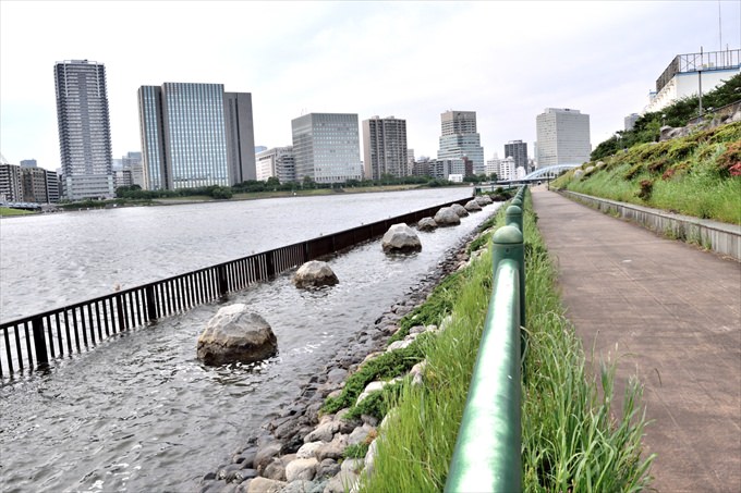 隅田川にかかる永大橋の下流に位置する公園。川の向こう岸に高層マンションが建ち並んでおり、東京タワーや中央大橋も望める抜群のロケーションです。
