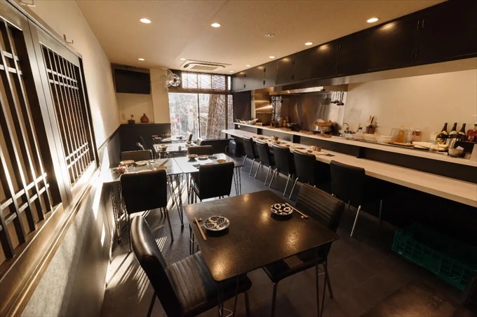 店内はテーブル席のみの落ち着いた空間で、そばはもちろん、焼き物や揚げ物、煮物、炒め物、サラダなど、居酒屋並みにメニューが充実しています。