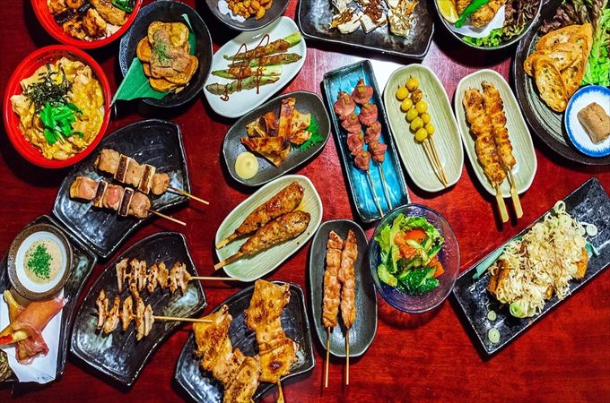 備長炭による炭火焼きは欠かせない一品。焼き鳥は、皮やももなどの定番から、珍しい白レバーもいただけると評判です。