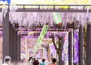 藤の木は4月中旬から花をつけ始め、5月上旬頃に満開となりなります。世界一の眺めと言われる藤棚を見学してみてください。