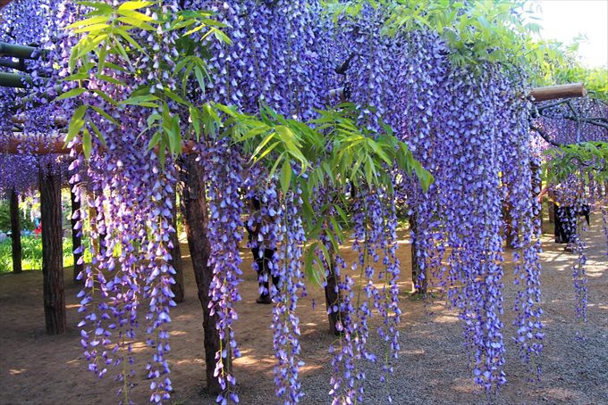 もともとは寺の境内だった場所が、藤の名所となりました。樹齢1200年以上、根元の周囲が4メートルの巨大なフジの木からなる藤棚は圧巻で、面積にすると600平方メートルもあります。