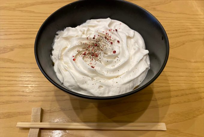 いちおしメニューは「初代の白いカレーうどん」。ケーキを思わせる見た目はまるでホイップクリームが乗っているかのようで、カレーうどんのイメージを覆します。
