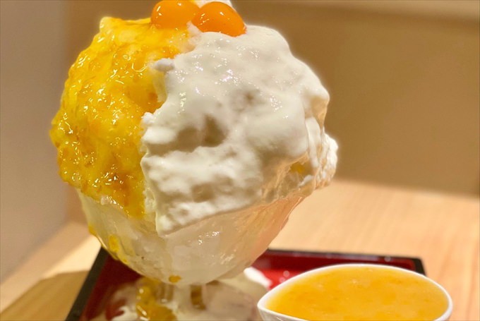 器にたくさん盛られたふわふわの氷の上には、ソースや果肉がたっぷり!見た目にインパクトがあり、ボリューム満点の贅沢なかき氷です。見た目はもちろん、味も美味しいのがポイント。
