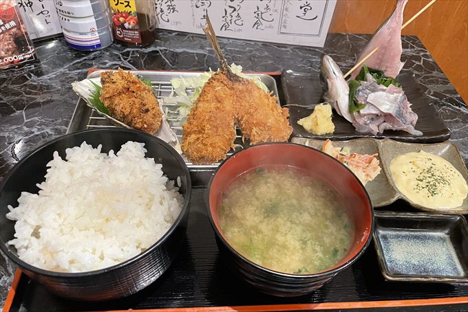 アジフライは、サクサクとした衣にふっくらとした身が詰まっていて、ぜひ食べたい逸品。なめろうも新鮮で、ネットリ加減が良いと評判です。