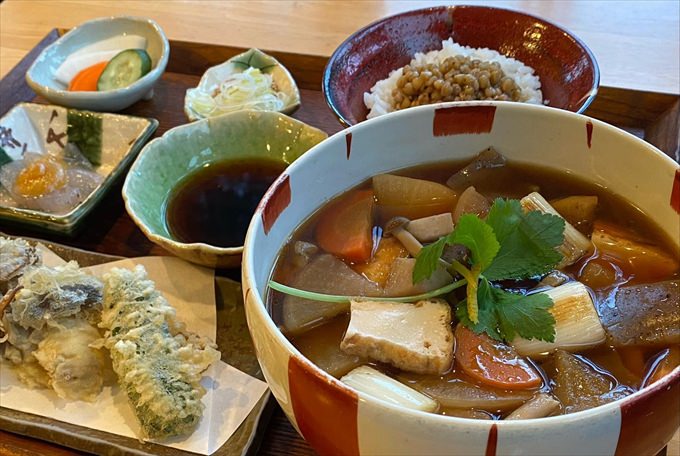 たくさんあるメニューの中でぜひ食べていただきたいのが「けんちんそば」。大根、人参、ゴボウなど具材たっぷり。奥久慈のしゃもの旨味も染み出てぜいたくな美味しさです
