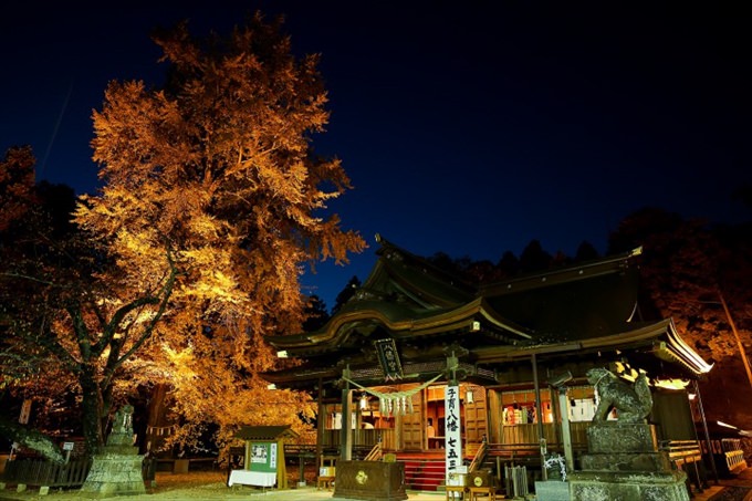 本殿のそばで大きな存在感を放つのは御葉付公孫樹(おはつきいちょう)と呼ばれるイチョウの木。樹齢800年のご神木で、たくさんのパワーをチャージさせてもらえそうです。