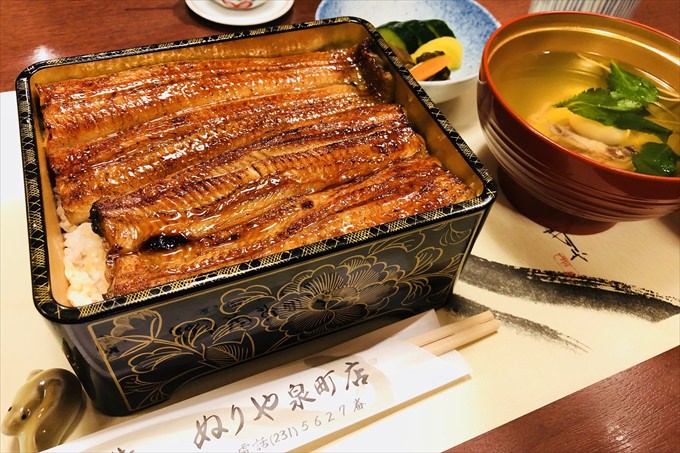 大きな看板が目印の老舗のウナギ店です。固めに炊かれたごはんに秘伝のタレが絡んだふわっふわのウナギが乗ったうな重。もう最高のごちそうです。