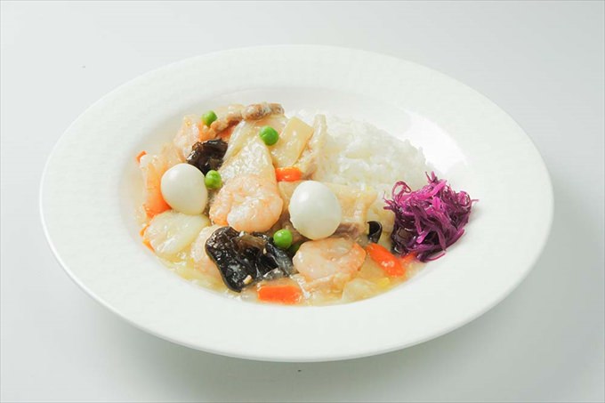 おすすめのメニューはチャップスイ。あまり聞き慣れないかもしれませんが、チャップスイとは野菜や海鮮の具材を炒めた餡がたっぷりかかったご飯で、洋風の中華丼のようなものです。