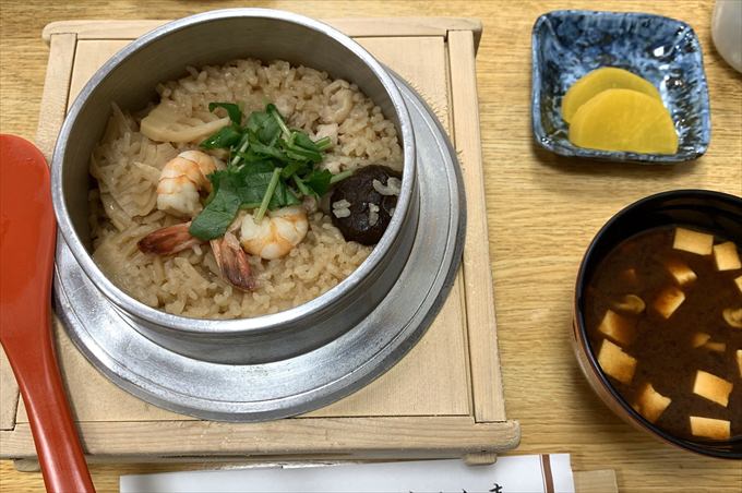 どこか懐かしさを感じるような和の雰囲気が漂う釜めし専門店。メニューは定番の五目やあさり、かに以外に季節限定ものもあり、どれにしようか迷ってしまいます。