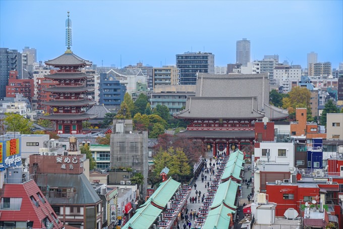 浅草寺は、東京屈指の人気を誇る観光スポット。シンボルである大きな提灯や、五重塔、仁王門など、見どころがいっぱい。