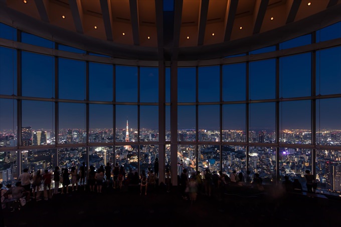 地上150mのメインデッキと250mのトップデッキの2つの展望台があり、東京の街並みを見渡せます。メインデッキでは季節のプロジェクションマッピングが行われており、夜景と映像のコラボレーションを楽しめます。