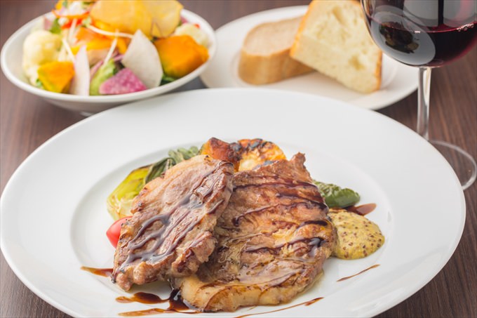 お昼から贅沢に楽しみたい気分の時には、別料金で注文できるお肉のメインディッシュも用意されています。ワインと一緒に味わいたいですね。