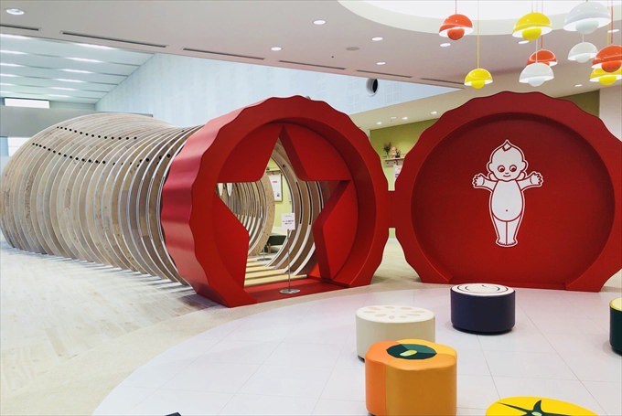 また、写真を撮るのが楽しいスポットでもあります。施設の真ん中にある木でできた大きなマヨネーズドームは圧巻。マヨネーズのフタ部分がリアルで、キューピーのロゴマークも可愛いですよ。
