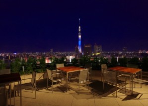 夕日が沈みだす幻想的な空の色とスカイツリーが輝く夜景をお酒とともに味わえる浅草デートに最適な空間です。