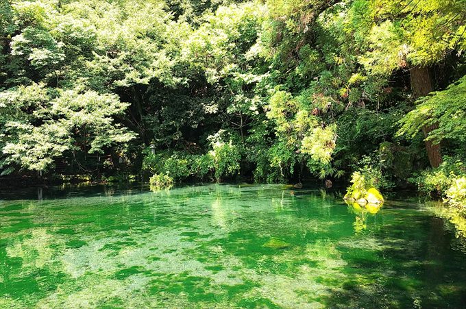 SNSでも話題の絶景スポット。非日常の光景をカップルで楽しみましょう。環境庁による「日本名水百選」のひとつに選ばれるほどきれいな水が湧き出ており、清らかな池と木々のコントラストが、風景画のように美しいと評判です。