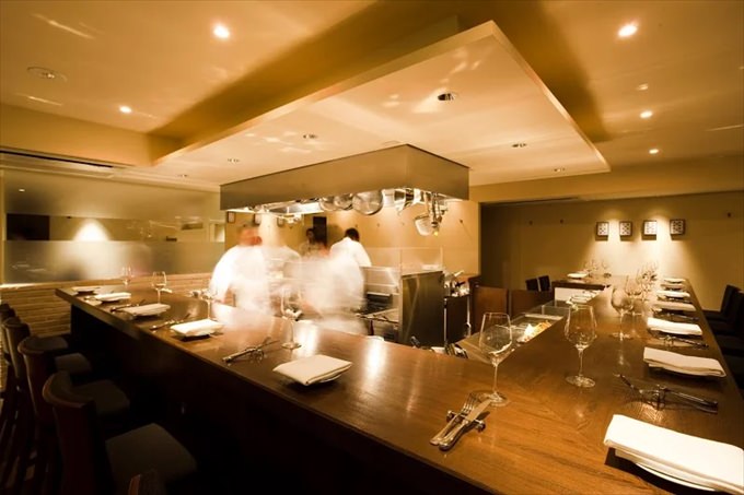 店内はフルオープンキッチンをカウンター席が囲むスタイルになっており、料理を待っている間も活気ある厨房の様子を楽しめます。