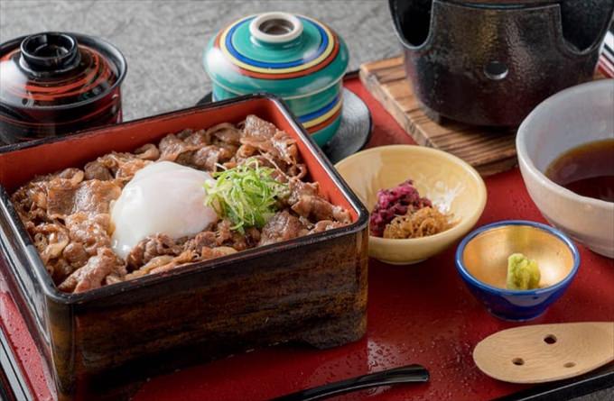 和牛料理と地酒のお店。サーロインステーキ重や焼き肉重、湯葉丼やステーキサラダ重などメニューも豪華。ランチのロースステーキ肉まぶし膳も見逃せません。