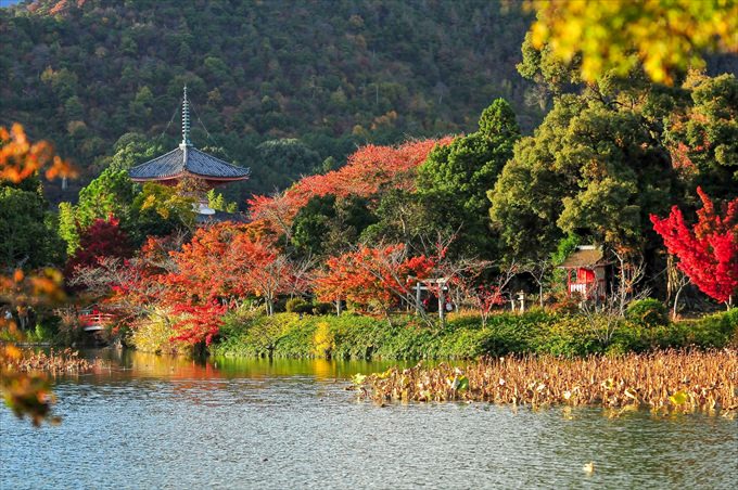 嵯峨天皇の離宮として誕生しました。境内はかなり広いため、お堂と大沢池エリアをグルっと巡って90~120分。