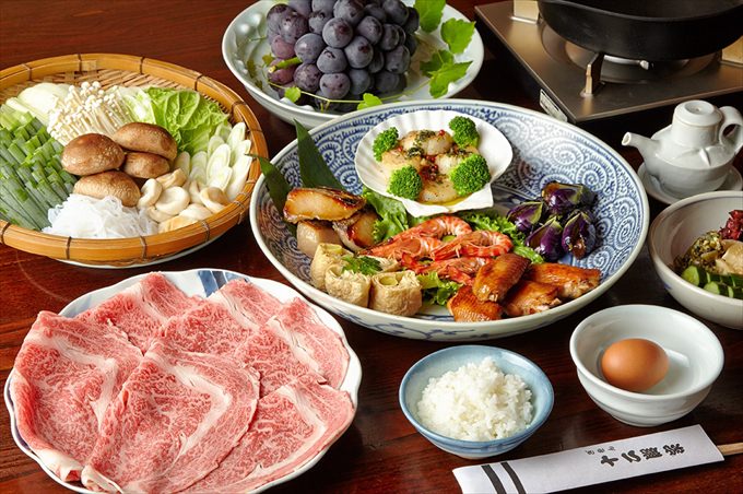 しゃぶしゃぶ発祥のお店。「牛すき鍋定食」や「すき焼きセット」、「ステーキ重」や「焼肉丼セット」など牛肉づくし。定番の「黒毛和牛サーロインのしゃぶしゃぶ定食」も人気のメニュー。