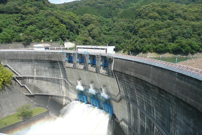 ドーム型アーチ式のダムです。通路は全長254m。迫力満点の放流シーンを眺められますが、いつ放流されるかは情報を確認してくださいね。