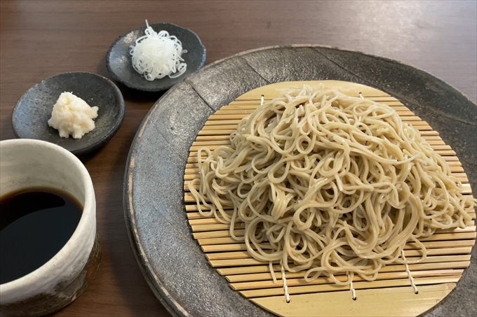 石臼挽きのそば店です。辛味大根おろしそばや水菜とおあげのみぞれそば、月見そばや冷やしたぬきなど、種類はすべて十割そば。クリームチーズのみそ漬けもあり、お酒のつまみにピッタリ!