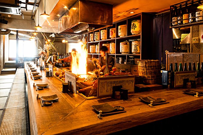 デートには目の前で調理が見えるカウンター席も人気。パチパチと囲炉裏の音が聞こえる落ち着いた隠れ家のような店内はゆっくりとした二人時間が過ごせそうです。