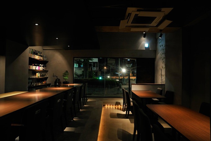 落ち着いた創作和食のダイニングバー「龢(ナギ)」。全面ガラス張りの入口や和モダンな空間は、隠れ家の雰囲気さえ漂わせているかもしれません。