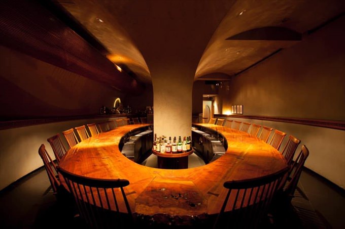 銀座駅徒歩5分の「リトル スミス」。店内に入るとまず目にとびこむのは珍しい大きな楕円形のカウンター席。天井も高く解放感がある店内はまるで大人の秘密基地のようです。