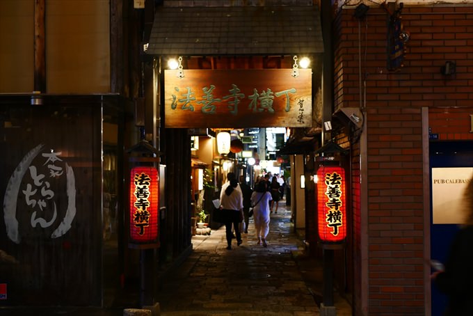 水掛不動さんと呼ばれて親しまれている法善寺を中心に、長さ80m、幅3mの二本の路地が東西に伸びる横丁。石畳ということもあり、情緒漂う雰囲気が大人の夜デートにぴったりなスポットです。