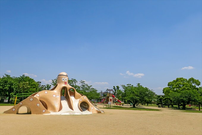 高槻の中心にある公園で、半分は芝生広場になっています。高槻城は、江戸時代に北摂唯一の城郭でした。そんな城の跡地に位置する公園です。