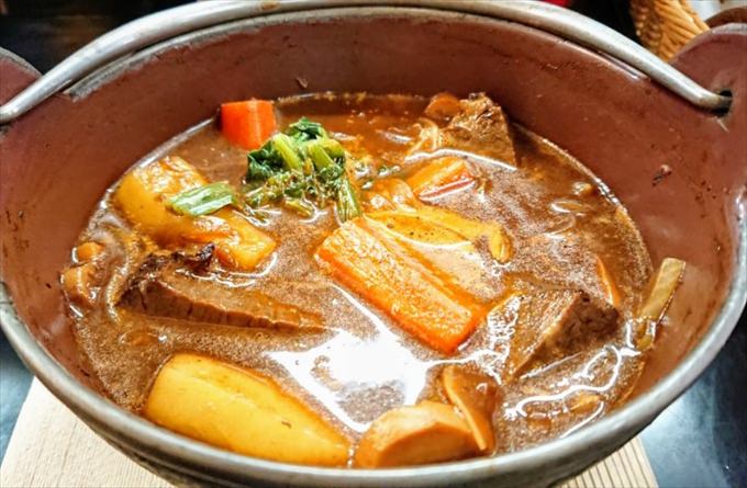 こちらで頂きたいのが名物のビーフシチュー。お肉は柔らかく、にんじんなどの具材もごろっと大ぶりで食べ応えがあり満足感のある一品。ビーフシチューでは珍しいさっぱりとしたルーは和風にも感じられごはんとの相性もバッチリ。
