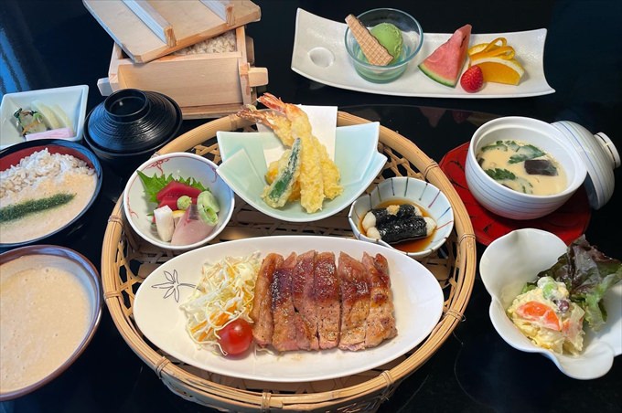 素朴な味わいで何杯でも食べられてしまうむぎとろはもちろん、お刺身やステーキなど、その他メニューも驚くほど贅沢なラインナップ。デザートまでセレクトできます。