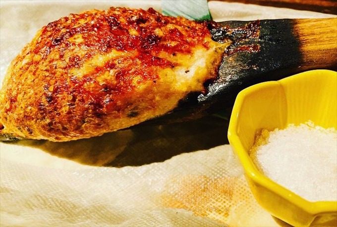 なかでも炉端焼きのつくねはぜひ食べていただきたい一皿。木べらに乗せて炭でじっくり焼き上げているから、ふっくらとしていて旨みが凝縮されています。ぜひ自家製ダレとたっぷり絡めて召し上がってください。