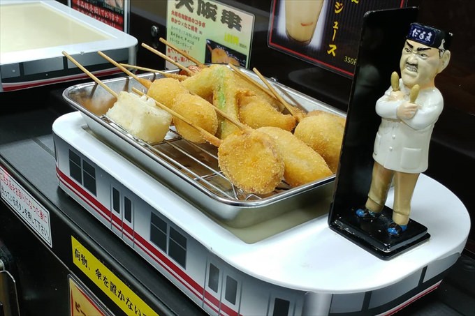 大阪で有名な串カツチェーンの一つで、さまざまな種類の美味しい串カツがいただけます。タッチパネルで注文をすれば、回転寿司店のように特急レーンにのって串かつが運ばれる仕組み。