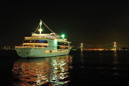 東京湾の大パノラマを眺めながら、本格料理が楽しめる大型レストラン船。ランチ(2時間)、トワイライト(2時間)、ディナータイム(2時間20分)の3便運航しており、レインボーブリッジ、お台場、大井埠頭、羽田空港といった東京湾の見所スポットを巡る。
