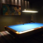 全12レーンが4レーンごとガラスで仕切られていて、カーテンを引けば個室感覚のプライベートレーンとして利用することも可能。落ち着いた雰囲気のなかダーツやビリヤードが楽しめるほか、カウンターバーもあり、ビールやカクテルを飲みながらプレイできる“大人の遊び場”だ。
