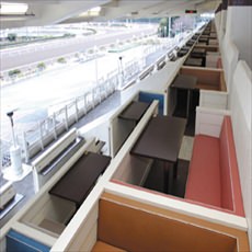 レストランや売店などバラエティーに富んだフードコーナーも充実。競馬観戦型レストラン「ダイアモンドターン」では、バイキングを味わいながら白熱のレースを望む、ワンランク上の観戦が楽しめる。テーブルモニター付きのカップルシートも用意されているのでデートの利用にぴったりだ。