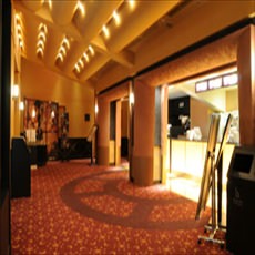 有楽町のニュートーキョービル3Fにある映画館。高級感ただよう広々としたロビーは、柔らかい照明に包まれ、落ち着いた雰囲気をかもし出している。
