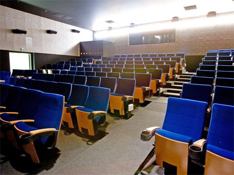 場内はどこに座ってもスクリーンがみやすいスタジアム形式。キネット社の座り心地のよい座席を使用しているので、長時間座っても疲れず映画に集中することができる。