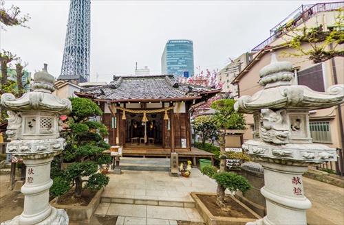 東京スカイツリーのそばで静かにたたずむ押上天祖神社。堂々とそびえ立つスカイツリーを眺めることができる境内は、絶好のビューポイント。出世・開運にご利益があるとされているので、スカイツリー周辺でデートを楽しむ際には、散策ついでに開運祈願を。