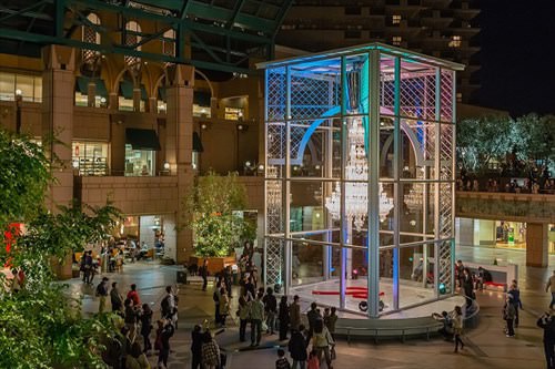 一番の見どころは、センター広場に展示されるバカラのシャンデリア。バカラ史上最大の大きさを誇り、高さ8.4m、幅4.6m、重さ1.8tにもおよぶ。圧倒的な存在感とクリスタルが織りなす幻想的な輝きが訪れる人々を魅了する。