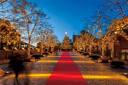 大人のクリスマスデートが楽しみたいカップルにぴったりのイルミネーションスポット。約10万球のLEDが、ガーデンプレイスをきらびやかに飾り立てる。